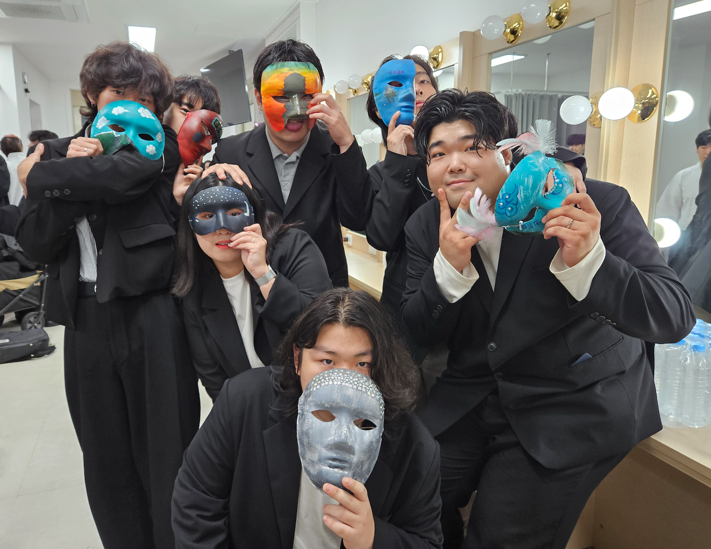 ○ 특히 이번 무대를 위해 학생들이 직접 안동팔경을 주제로 한 탈을 제작하여 착용하고 공연에 임해 큰 주목을 받았다. 각각의 탈은 안동의 자연과 문화적 아름다움을 얼굴 표정과 형상으로 표현해, 음악과 전통문화의 조화를 독창적으로 드러냈다.