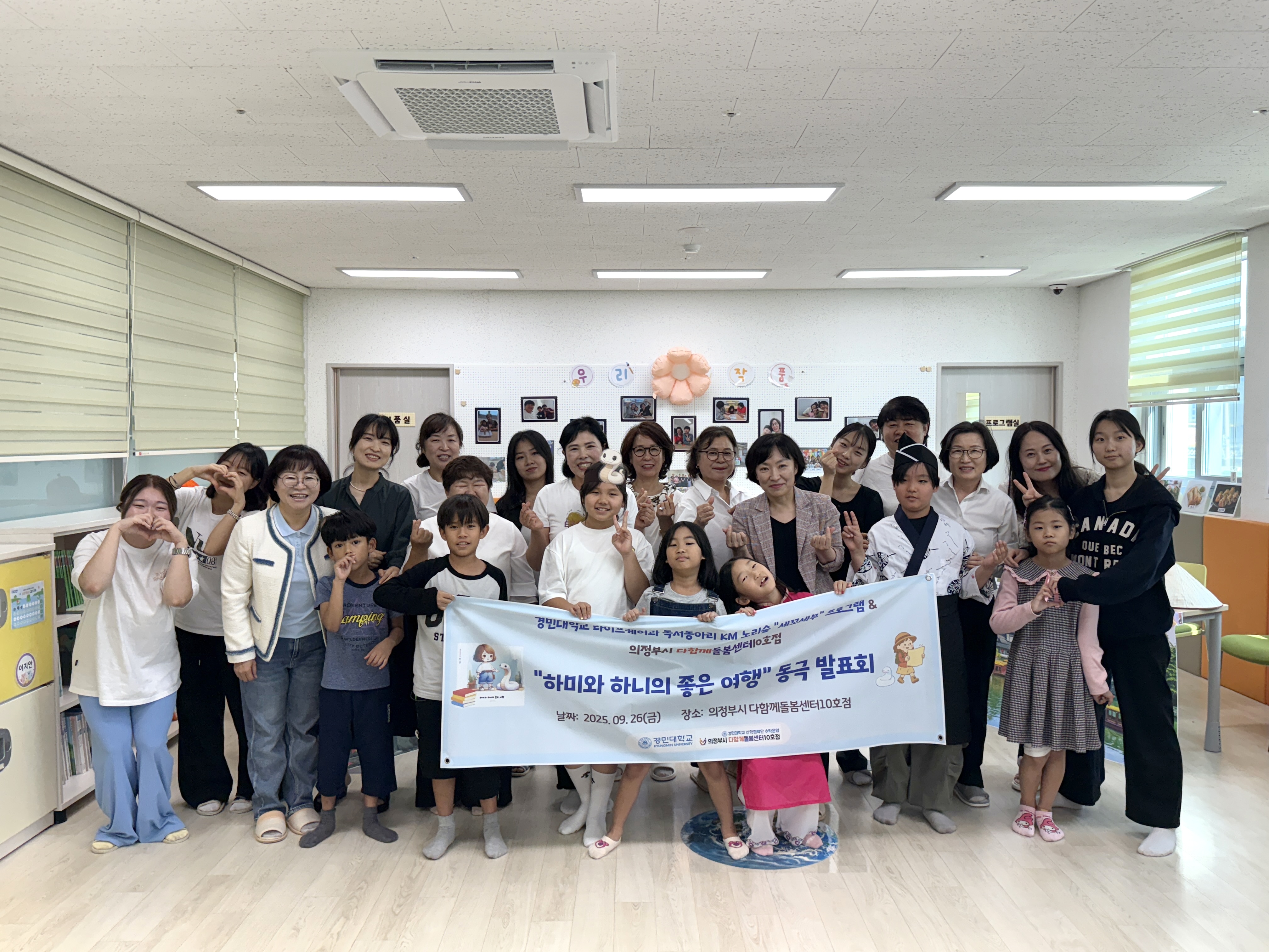 ○ 경민대학교 라이프케어과 전공 동아리 KM 노리숲(지도교수 김소영)은 활동의 결실로 초등학생 멘티들과 함께 창작 이야기극을 무대에 올리며 「2025년 대학생 멘토링 동아리 지원사업」을 성공적으로 마무리했다. 이번 공연은 지난 4월부터 이어온 ‘세대가 꼬리에 꼬리를 무는 이야기(세꼬세무)’ 프로그램의 최종 성과로, 아동들의 상상력과 성인학습자 멘토들의 경험이 어우러져 세대 간 공감과 소통을 보여주는 특별한 무대로 완성되었다.