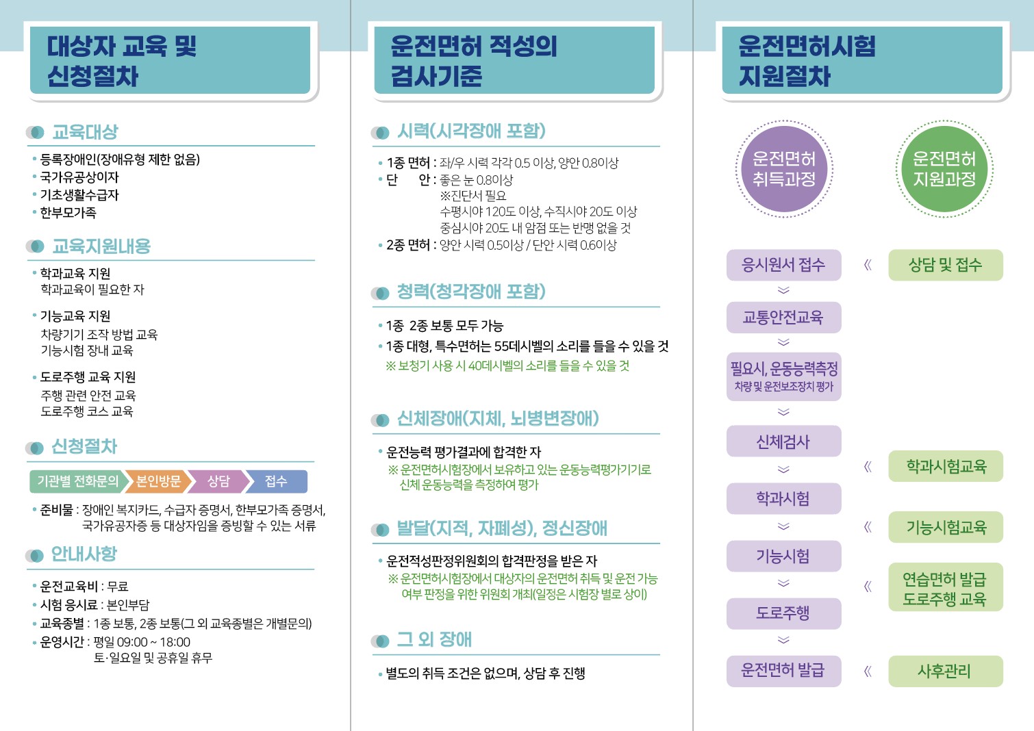 나. 교육지원 내용 :학과 · 장내기능 · 도로주행 교육